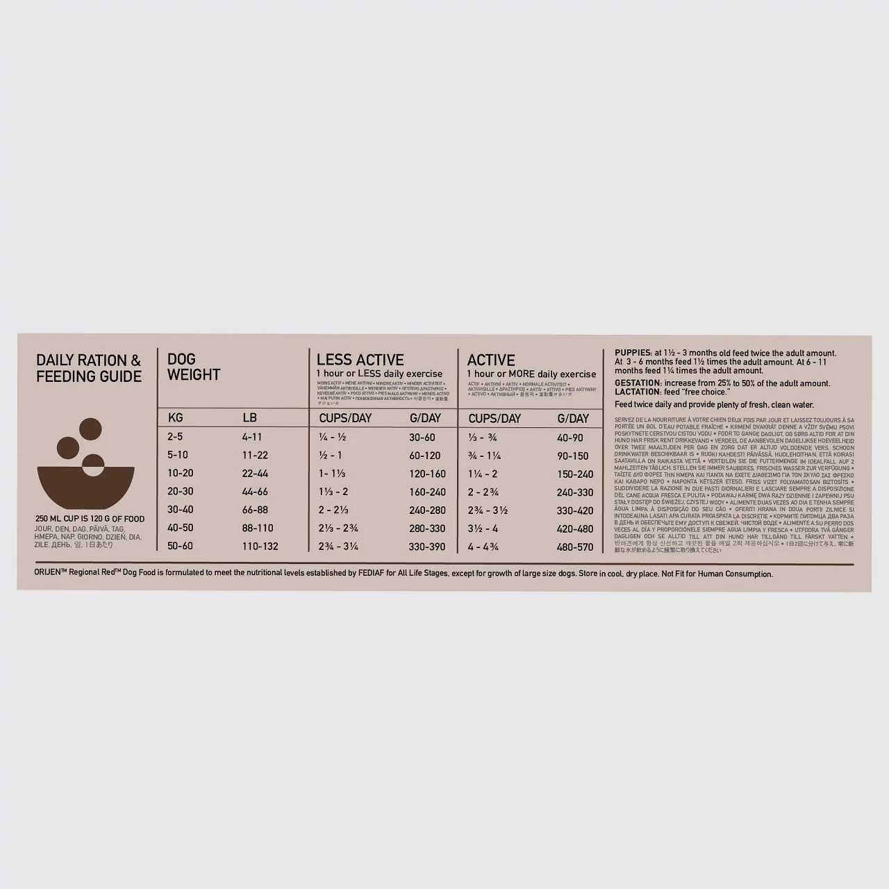 Les aliments naturels d’ORIJEN contiennent une variété inégalée de viande et de poisson frais. Les aliments secs ORIJEN sont préparés avec 85 % d’ingrédients d’origine animale et sont 100 % naturels.